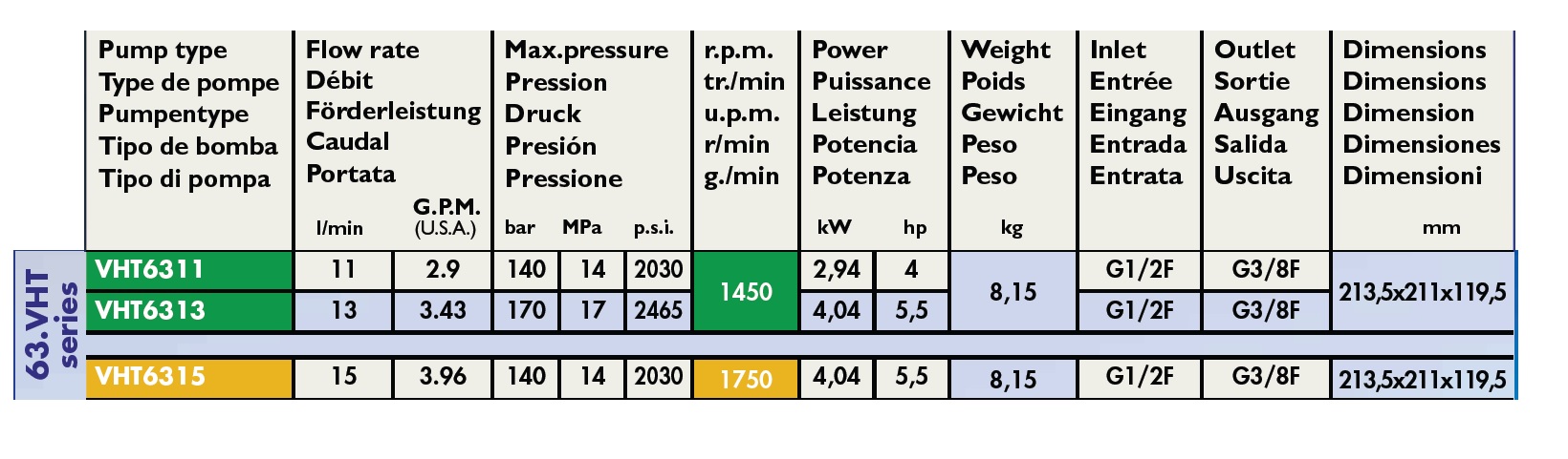 VHT6311 壓力140Bar,流量11L/min,轉(zhuǎn)速1450rpm,選配功率3kW電機(jī),
